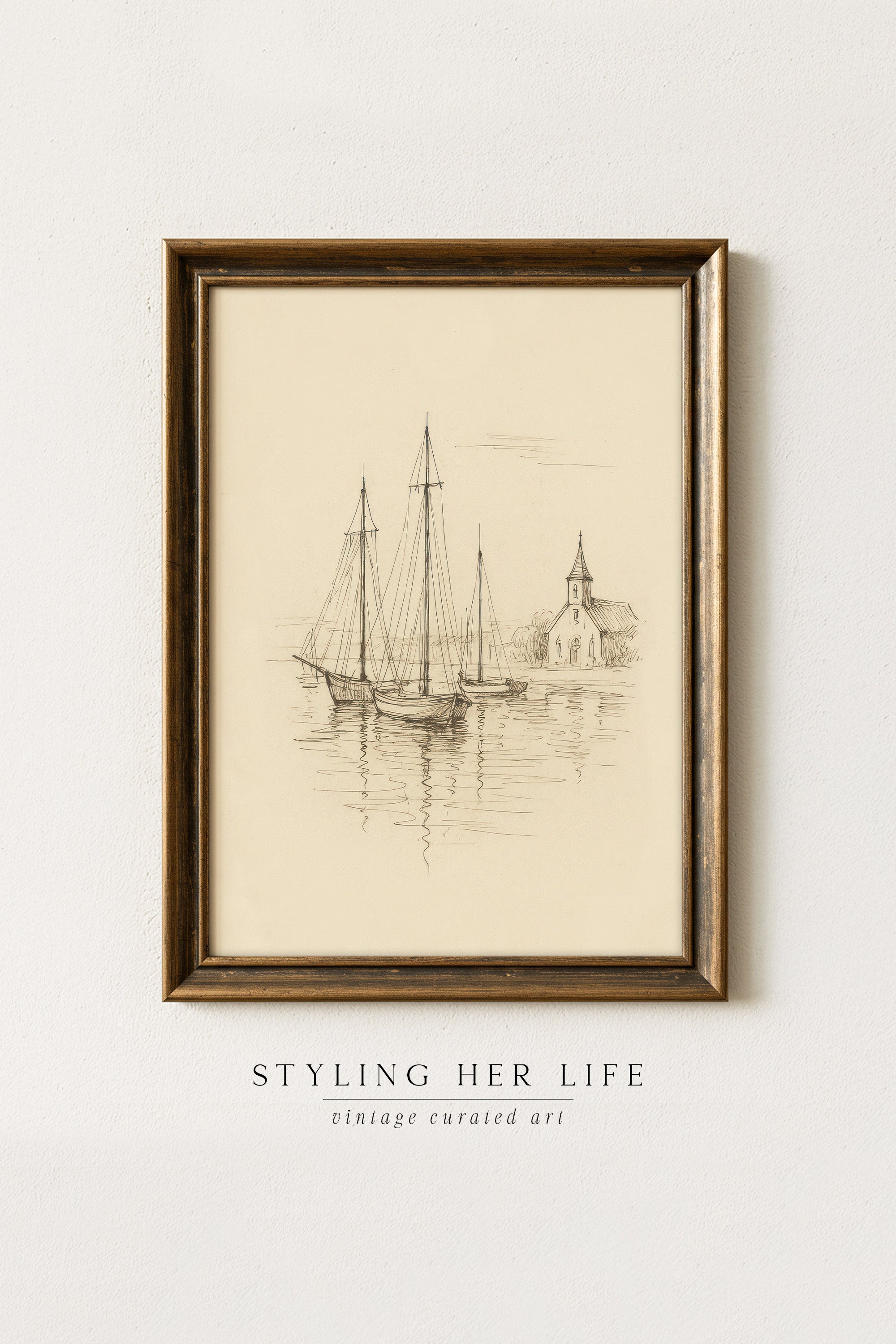 • Use the ship sketch and bird prints together in a hallway, office, or bedroom for subtle nautical flair without going full themed decor.